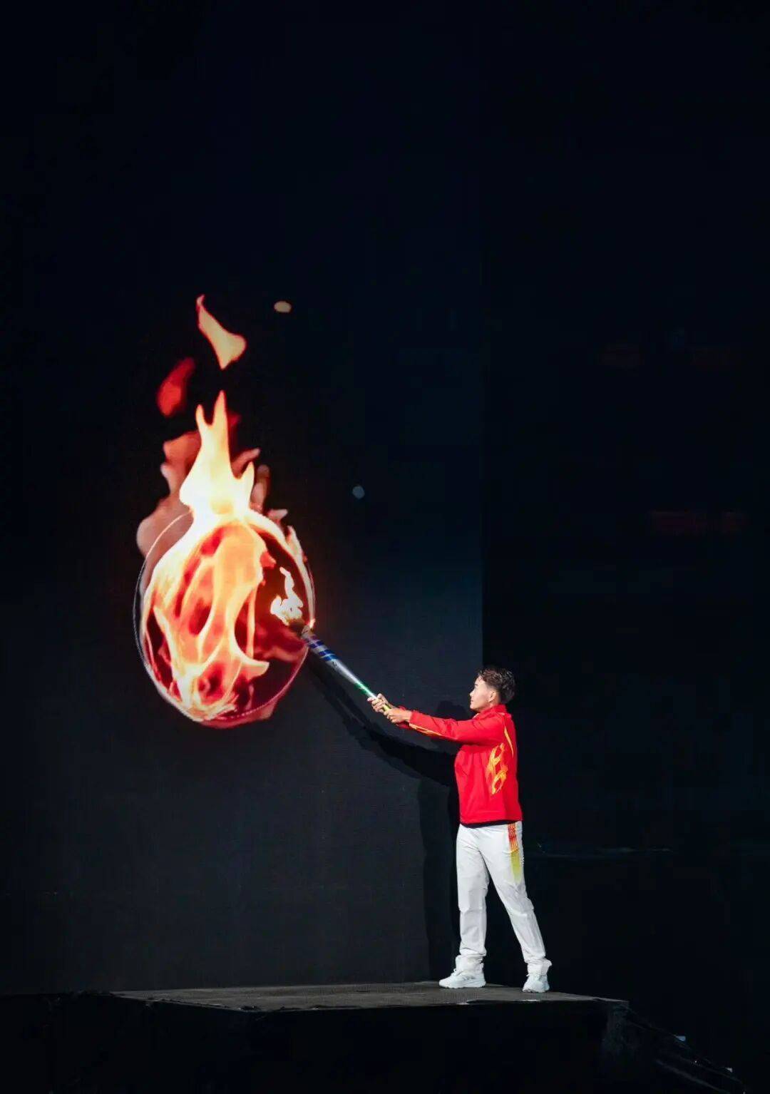 20时,火把入场传递。武汉市拍浮解析员艾衍含行为第一棒火把手亮相,将火把传递给第二棒火把手光子机器东谈主。当光子机器东谈主稳稳留步,机械臂精确递出圣火,全场掌声雷动。车谷江大女足队员王霜接棒,擎炬前行,将火把点在电子屏幕上,造成一个火苗,电子屏幕中的“长江江豚”从深水中跃出,将火苗顶出水面,顶至庞大的星空,点火主火把。千年娴雅之火,化作新时间改造之光,照亮车谷夜空。