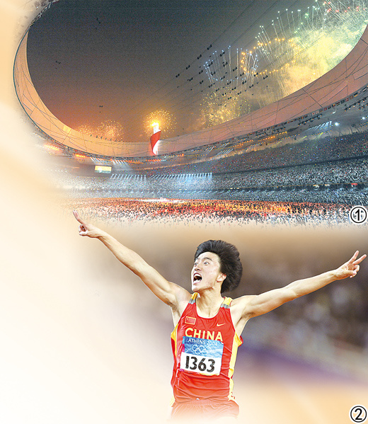 图②:2004年雅典奥运会,刘翔在须眉110米栏比赛中夺冠。