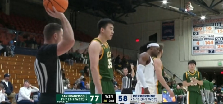 NCAA旧金山迎来和佩珀代因大学的一场对决,上半场旧金山大学沿途跳动,全面碾压,打出里外勾搭,多点吐花,首如果一波一浪体育赛事直播,一浪高过一浪,这场比赛要道是两位中国球员都得回了上场契机。